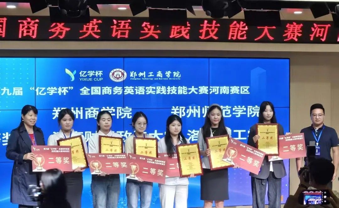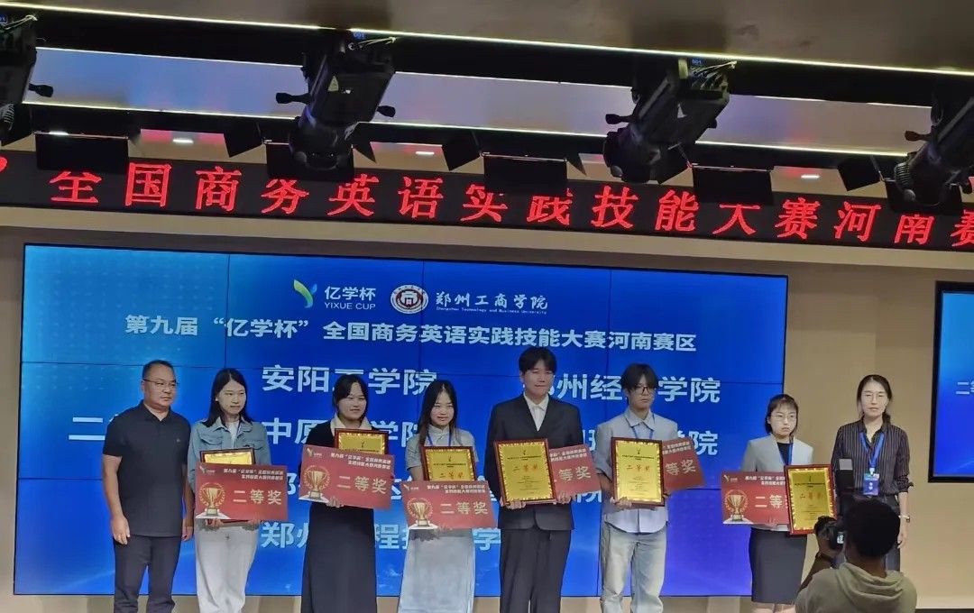 近日,第九届 “亿学杯” 全国商务英语实践技能大赛河南省赛区决赛在郑州工商学院落幕。我院商务英语系两支参赛队伍表现突出,分获省赛二等奖,尽显我院办学实力。