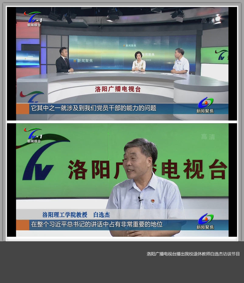 8月24日,洛阳广播电视台新闻综合频道《新闻聚焦》栏目播出我校退休教师白选杰访谈节目,就洛阳市党员干部学习贯彻习近平总书记“七一”重要讲话精神进行了深入解读。