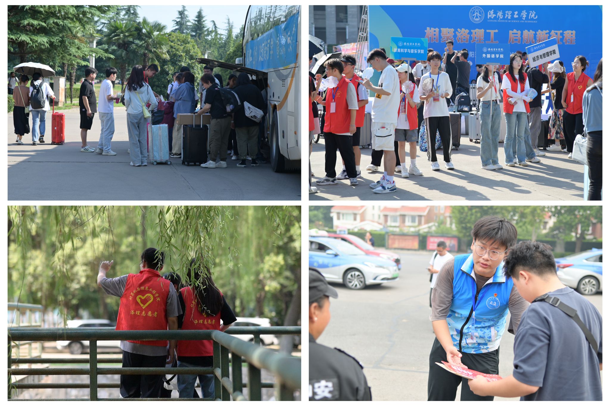志愿者帮助新生搬运行李并引导进行登记报道
