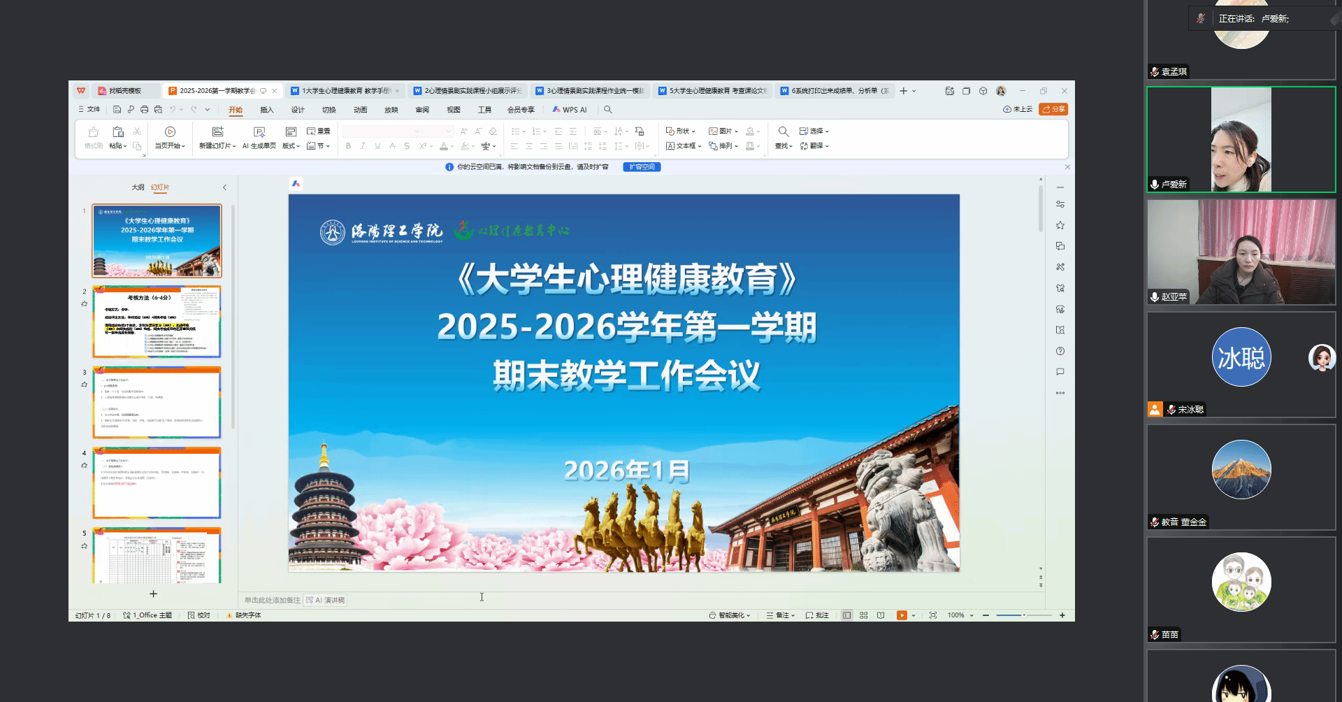 此次期末教学工作会议的顺利召开为全体授课教师提供了清晰的期末工作指引,也进一步凝聚了教学共识。教研室将继续支持教师开展教学交流与能力建设,共同推进心理健康教育课程向更科学、更系统、更有效的方向发展,助力学生塑造积极心态、实现全面成长。