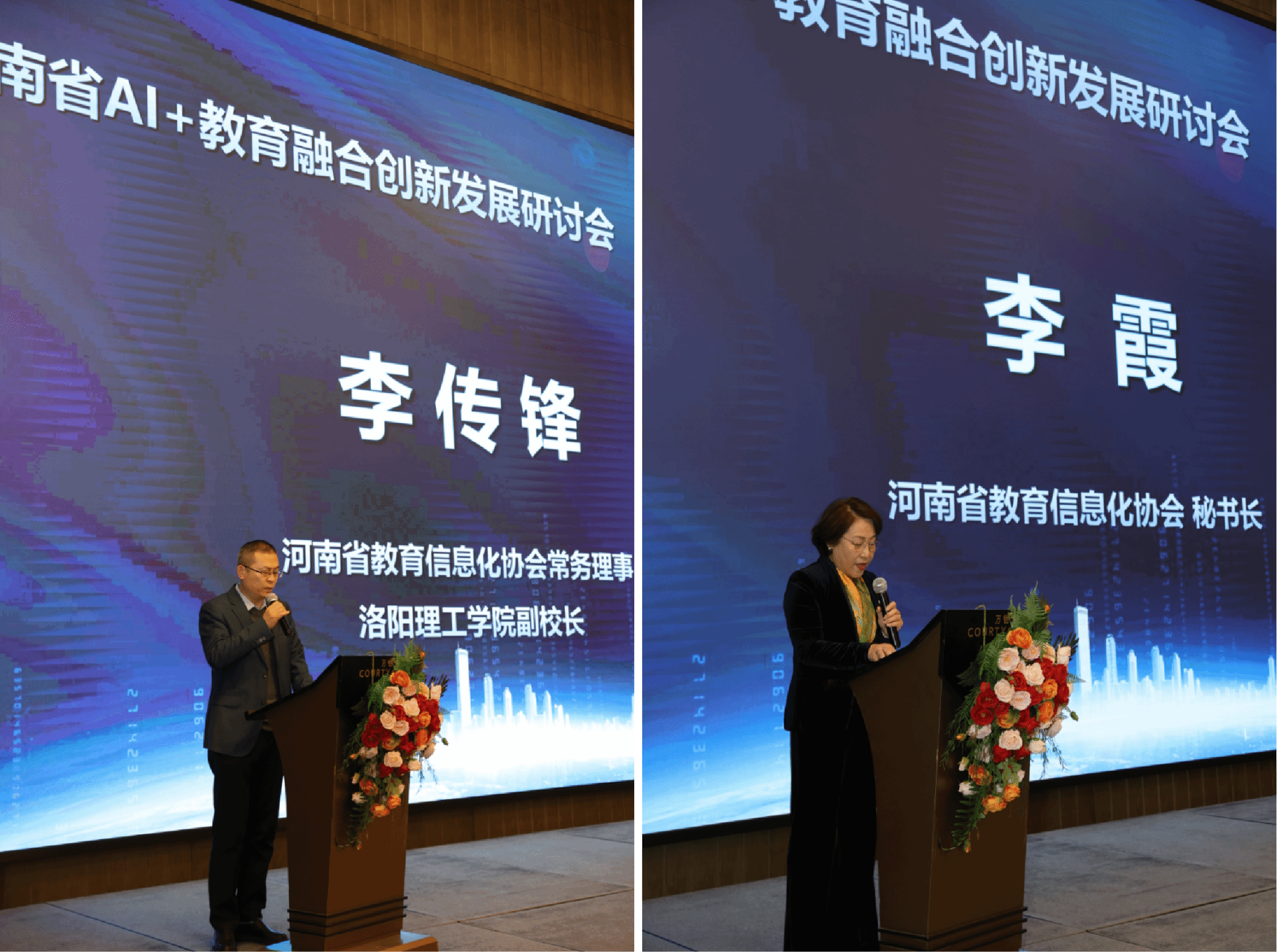 河南省教育信息化协会秘书长李霞出席会议并讲话(图右)洛阳理工学院副校长李传锋致辞(图左)