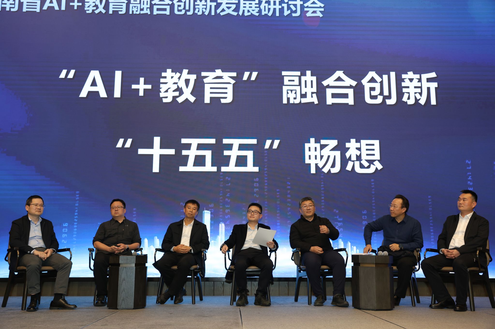 研讨环节中,三位专家和省内高校、企业界的与会代表结合各自实践经验,围绕AI驱动教育教学变革、数智资源建设、教育治理智能化等议题展开热烈交流。