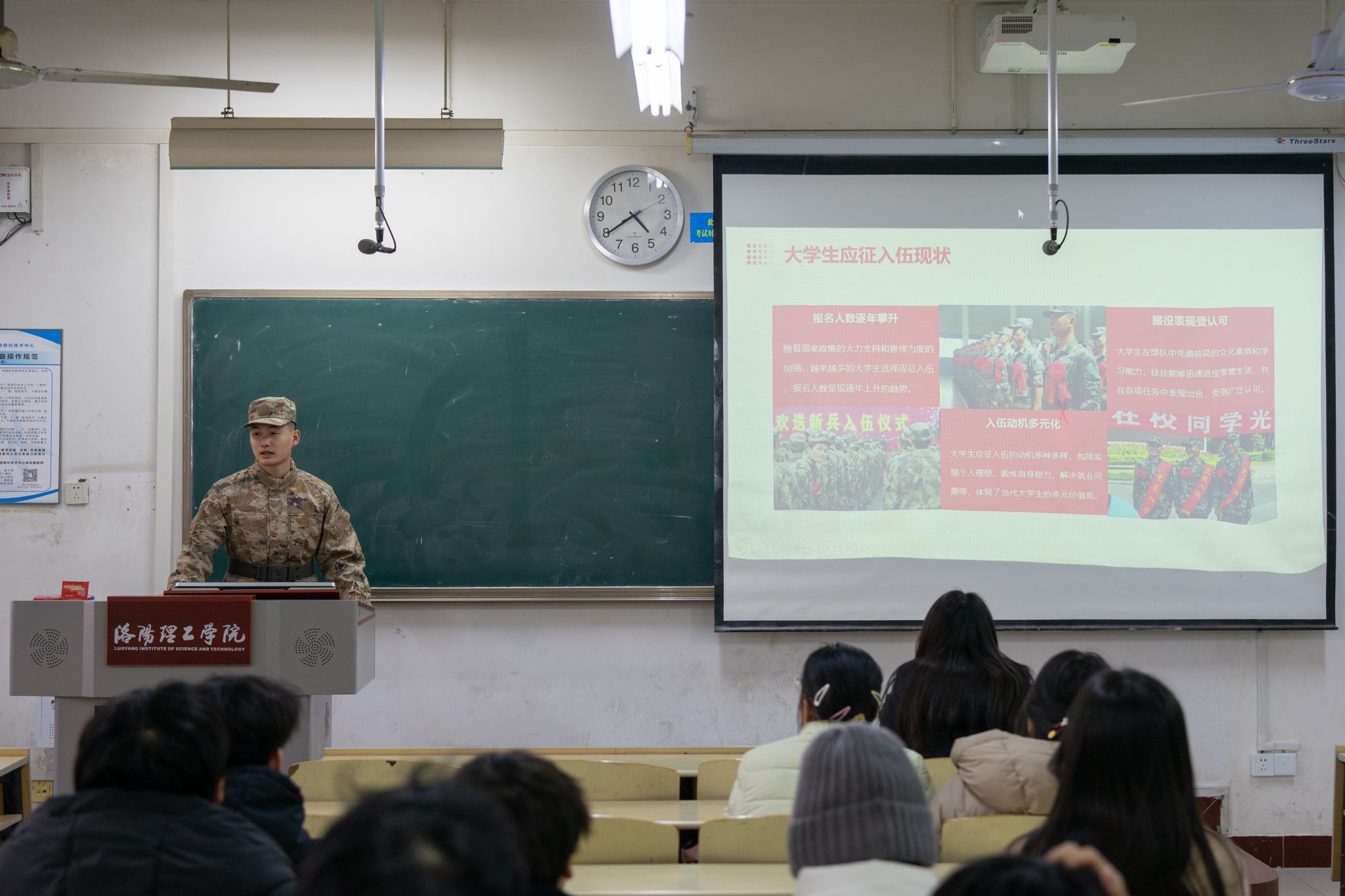 为深入学习贯彻习近平强军思想,激发青年学子参军报国热情,高质量推进我校2026年春季征兵工作,12月以来,我校“戎耀征兵宣讲团”深入各二级学院,开展多场宣讲活动,在校园内部掀起一阵崇军尚武、携笔从戎的热潮。
