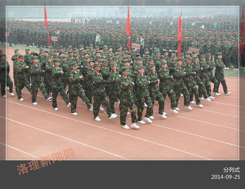 在分列式上,由各系(部、院)组成的22支方队伴随着以整齐的步伐有序的走过检阅台,接受学校领导和新生军训营营长的检阅。