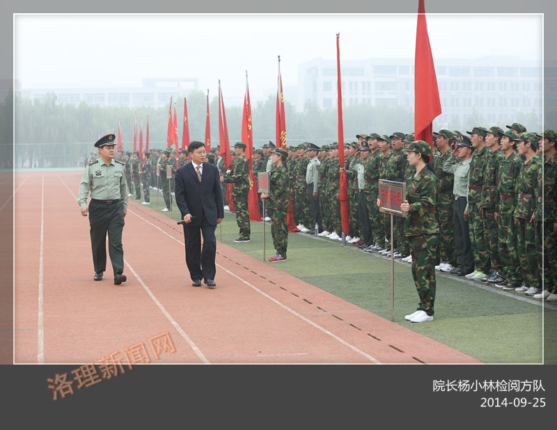 院长杨小林作了讲话。他代表全校师生向尽心指导我校新生军训工作的部队教官表示衷心的感谢,向在军训中取得优异成绩的集体和个人表示祝贺。他介绍了学校的基本情况,对2014级新生如何珍惜大学时光、学好专业知识、成为国家建设的有用人才提出了四点希望:一要及时转换角色。要树立以专业兴趣为主的专博结合的学习观念,培养自主自力的学习习惯,接收大学阶段集体生活中多层次的丰富的情感体验,养成主动追究知识的来源和根据、知识与人生的意义追求紧密结合的思维方式。二要树立远大理想。要把个人的发展与国家命运结合起来,把个人的梦想与实现习近平总书记提出的“中国梦”的内容紧密融合在一起,努力使自己成为理想远大、信念坚定的人,品德高尚、意志顽强的人,视野开阔、知识丰富的人,开拓进取、艰苦创业的人。三要刻苦认真学习。要培养学习主动性,在思考中学、质疑中学、兴趣中学、互动中学,把知识学通、学活,真正把知识的精髓学到手。四要锻造优良品质。作为当代大学生,要注意树立务实的态度,以积极进取的精神,平和淡定的心态,安排好自己的大学生活。要按照培养综合素质的要求,注重品质培养,一步一个脚印,踏踏实实地去实现自己的人生目标,在祖国的建设和发展中真正实现自己的人生价值。
