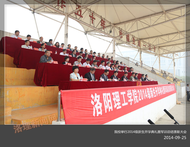 9月25日上午,我校2014级新生开学典礼暨军训总结表彰大会在王城校区体育场隆重举行。学校领导杨小林、陈岩、袁静波、韩振英、姜涛、曹国杰、陈富贵,副校级调研员庞彩霞,中国人民解放军71426部队副参谋长段小刚以及新生军训营营长赵伟出席仪式。学校各职能部门、各系(部)负责人以及2014级新生参加了仪式。仪式由党委副书记陈岩主持。