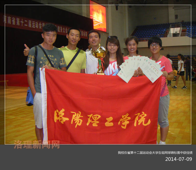 日前,河南省第十二届运动会暨首届全民健身大会大学生组网球锦标赛在中原工学院落下帷幕,我校代表队在这次锦标赛中获佳绩。 我校网球队经过6天的激烈角逐,取得本科甲组女子团体第五名的好成绩。材料科学与工程学系杨改婷与环境工程与化学系徐晓琳获女子双打第一名,电气工程与自动化系孟璐获女子单打第三名,工程管理系常晓菲获女子单打第七名。电气工程与自动化系孟璐和环境工程与化学系系刘伟鹏被评为优秀运动员。
