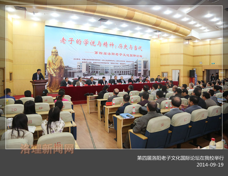 9月19日上午,第四届洛阳老子文化国际论坛开幕式及首场中外专家报告会在我校开元校区图书馆四楼学术报告厅举行。国际著名学者、北京大学讲习教授陈鼓应,甘肃省老子文化研究会会长、甘肃省政协原副主席蔚振忠,中国社科学院哲学所研究员陈静,河南省老子学会执行会长赵保佑,中共洛阳市委常委、宣传部长杨炳旭,河南省老子学会副会长、洛阳市政协原副主席李良龙,我校校长杨小林以及洛阳从事老子文化研究的专家学者,来自美国、日本、韩国等国内外文化学者200余人参加了开幕式。开幕式由市社科联副主席蔡幼鹏主持。