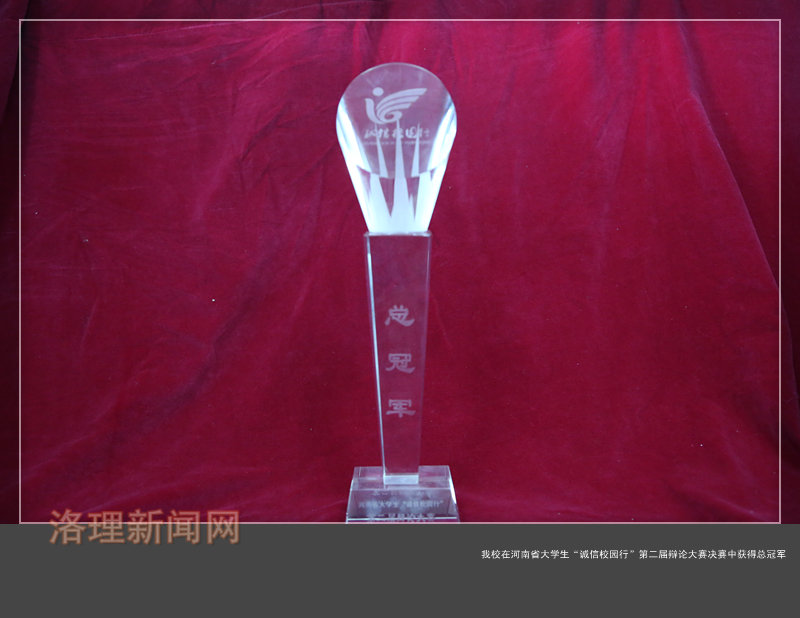 5月21—24日,河南省大学生“诚信校园行”第二届辩论大赛决赛在信阳师范学院举行。本次大赛历经初赛、复赛、决赛,历时近一年,全省共有132所高校参加了本次辩论大赛。经过前期初赛、复赛选拔,共有22所高校晋级全省决赛。由朱静静、高天铭、胡奥琳、路子涵、李锐智、余珍等6名同学组成的我校代表队,在决赛阶段中,积极努力,充分发挥,最终以全省第一名的成绩获得了本届辩论大赛的最高荣誉“总冠军”。