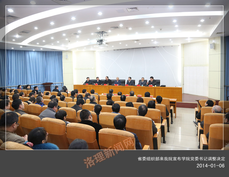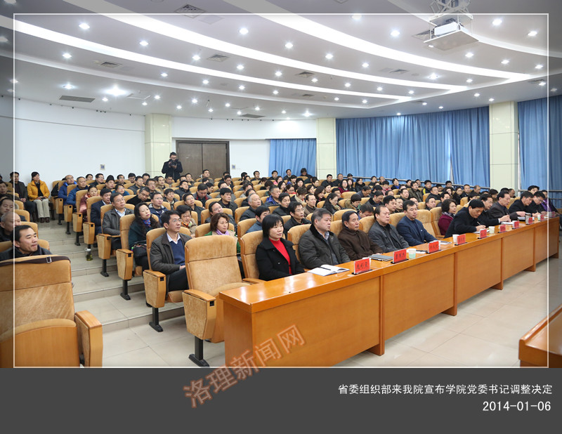 1月6日上午,我院在王城校区办公楼报告厅召开中层干部会议,省委组织部来我院宣布学院党委书记调整决定。省委组织部副厅级组织员、科教企业处处长修振环,洛阳市委常委、组织部部长田金钢,省委组织部科教企业干部处副处长王剑,省委高校工委组干处副处长宋辉前来我院出席会议。会议由段治乾同志主持。
