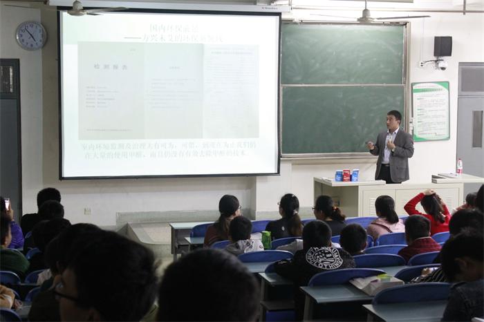 杨世魁先生首先以大气治理技术为切入点向同学们详细介绍了我国的环境保护的现状,并对环保行业发展前景进行了展望。同时,他还结合自身在能源化工行业从事烟气治理工作的成长经历,告诉同学们要想成为一名合格的环保人应该着重培养何种素养。