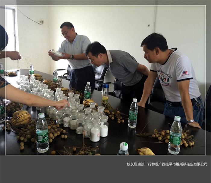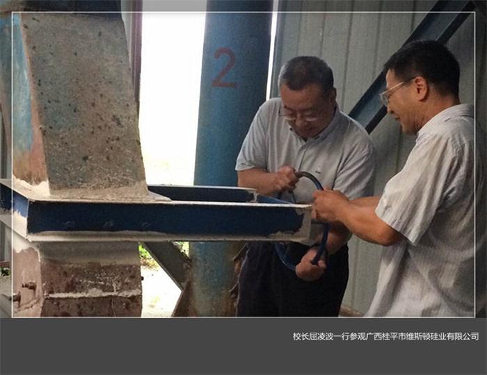 15日上午,屈校长一行冒着大雨到桂平市考察了8211班校友梁少豪创办并担任董事长的广西桂平市维斯顿硅业有限公司。维斯顿硅业有限公司是一家以生产各种各级高细石英微粉和改性微粉为主导,同时生产高细硫酸钡、活性碳酸钙粉体的企业,拥有唯一国内技术领先的连续式高温煅烧方石英工艺生产线。屈校长详细地了解了企业状况,倾听了企业面临的技术难题,并现场考察了各条生产线,与梁少豪商讨了今后如何利用学校的科研力量帮助企业解决困难等事宜。