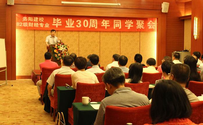 6月7日上午,我校82级财经专业同学在洛阳东山宾馆举行了以 “圆梦、分享”为主题的毕业30周年聚会。学院领导陈岩副书记、会计学系主任李柏生教授出席了大会。从全国各地回来的60余位同学参加了聚会。会议由8251班同学、深圳市和之味歺饮管理有限公司总经理胡全洲同学主持。