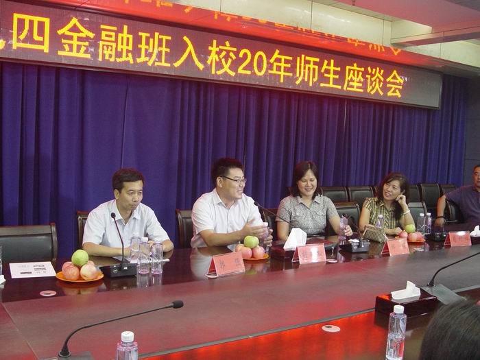 座谈会上,班主任郭强老师热烈欢迎同学们回到母校,对同学们取得的成绩表示祝贺,他向同学们介绍了学校发生的巨大变化,并代表校友办给每位同学赠送了校徽和学校的画册。每一位同学都尽情回味了当年在学校时候的点点滴滴,介绍了离校18年来自己的成长经历、现在的发展和未来规划,充分交流了人生感悟,共同畅谈了美好未来。任课教师邹丽老师、肖婷婷老师分别以学娱结合和终身学习为题,给大家又上了一堂课,受到同学们的热烈欢迎。最后,胡延松老师作了讲话,他勉励大家要把学校当成自己的娘家,把学习作为终身的目标,经管系和曾经的老师们作为同学们的强大后盾,关注每一位同学的发展,为同学们在困难和困惑时指引方向,提供帮助。