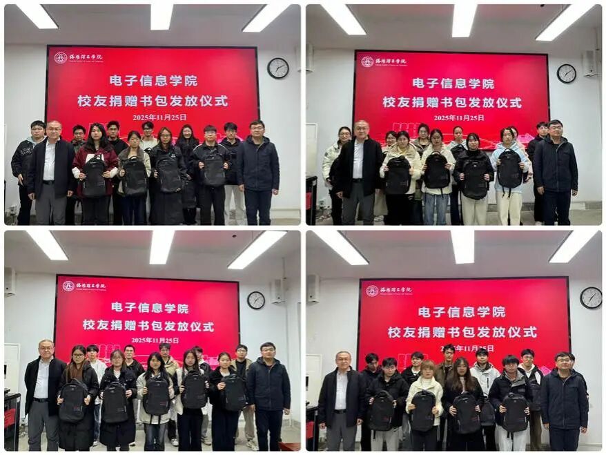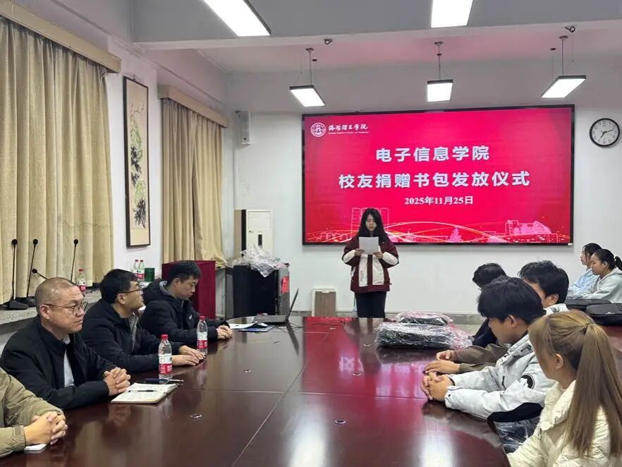 饮水思源明心志,感恩母校培育情。11月25日,索能环境公司创始人、我校2011级校友范伟以实际行动回馈母校,为电子信息学院学子捐赠100个多功能双肩包。捐赠仪式在学院会议室举行,学院党委书记杨涛、党委副书记陈朝辉、团委副书记金春阳出席捐赠仪式,捐赠仪式由学工办副主任赵文婷主持。