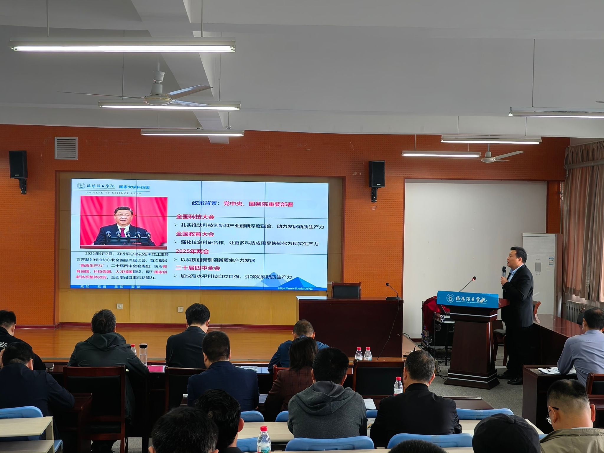 我校科研处、招生就业处、大学科技园相关负责人先后发言,分别围绕学校科研团队建设、科技成果转化、毕业生就业工作、大学科技园孵化成果等方面作详细介绍,全面展示学校服务地方经济发展的能力与成效。