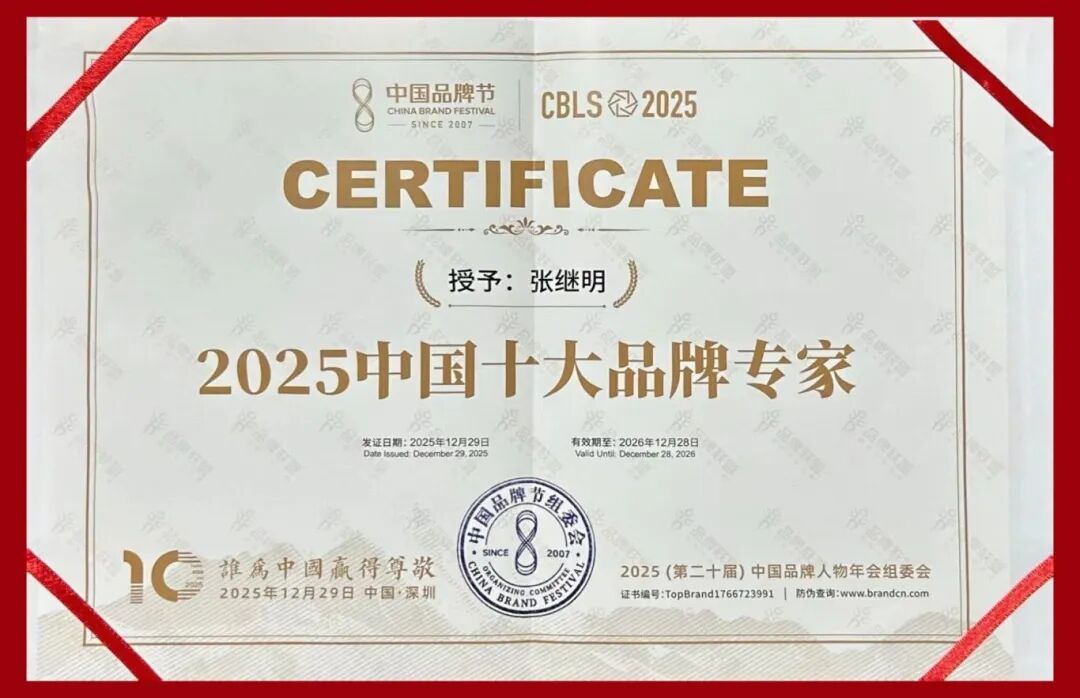 中国品牌人物年会历经二十载发展,已成为中国品牌领域规格最高、影响最广的年度盛会之一。张继明此次入选“十大品牌专家”,进一步体现了业界对其专业贡献的广泛认可。在品牌强国战略深入推进的背景下,以其为代表的专家群体将持续为中国品牌的高质量发展注入智慧动能,推动“中国品牌”向“世界品牌”跨越。