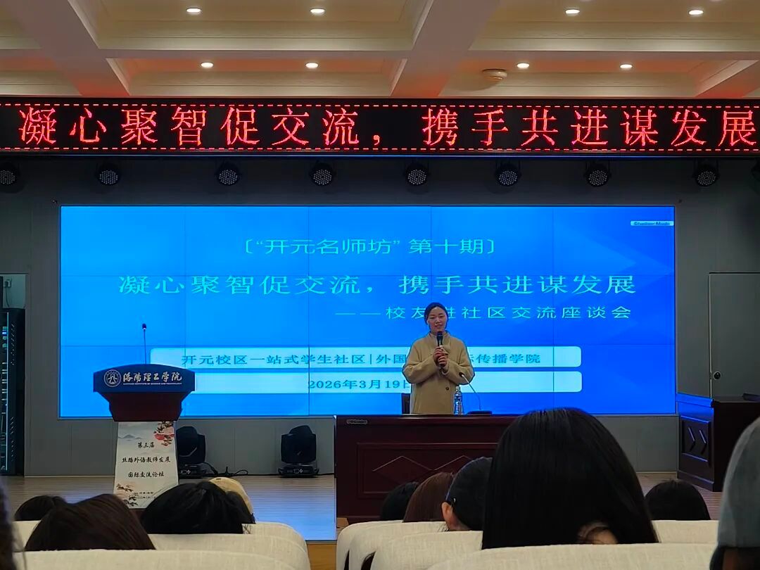 3月19日,“凝心聚智促交流,携手共进谋发展”校友讲坛活动在XE206教室举办。本次活动特邀我校2012届商务英语专业毕业生吉巧芳返校分享,活动由外国语与国际传播学院党委书记张慧泉主持,校企合作工作处校友服务科黄宇飞参加本次活动。
