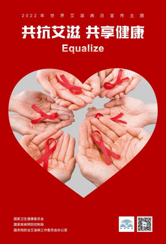 2022年12月1日是第35个“世界艾滋病日”。为进一步推动新时代艾滋病防治工作的高质量发展,全面营造全社会参与艾滋病防治工作的良好氛围,结合联合国艾滋病规划署确定的2022年世界艾滋病日宣传主题“Equalize”,国务院防治艾滋病工作委员会办公室确定并发布我国今年宣传活动主题为“共抗艾滋 共享健康”。该主题紧密结合了2022年联合国艾滋病规划署提出的英文主题核心信息,强调每个人都参与进来,携手应对艾滋病流行带来的风险与挑战,倡导全社会共建共治共享。