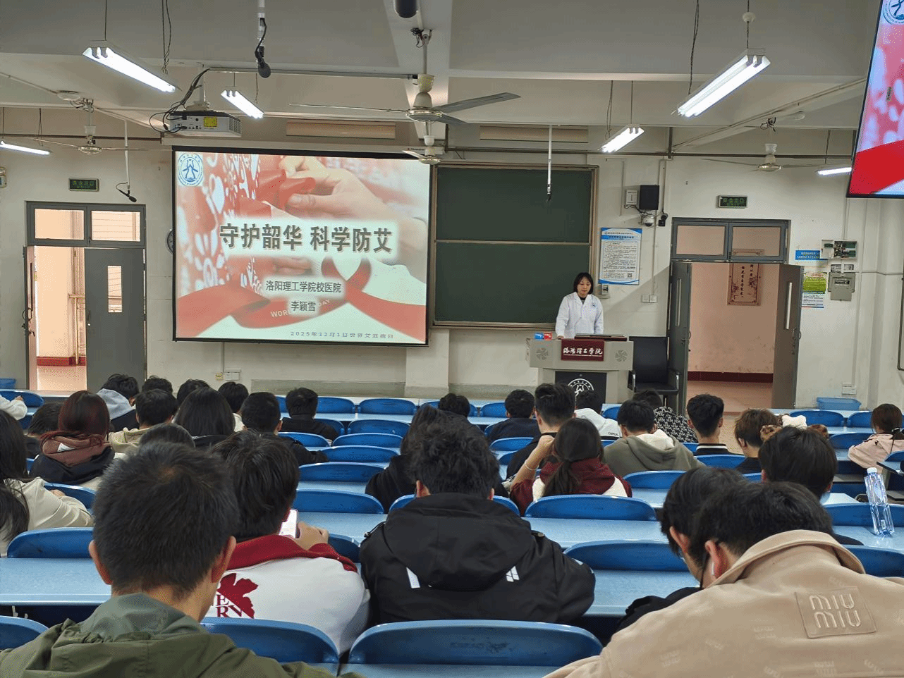 为普及艾滋病防控知识,增强我校学生艾滋病防控意识,2025年11月13日下午,校医院在DE104为能源与化工学院学生开展“守护韶华,科学防艾”讲座,主讲人为公共卫生科科长李颖雪,共100余名同学参加。