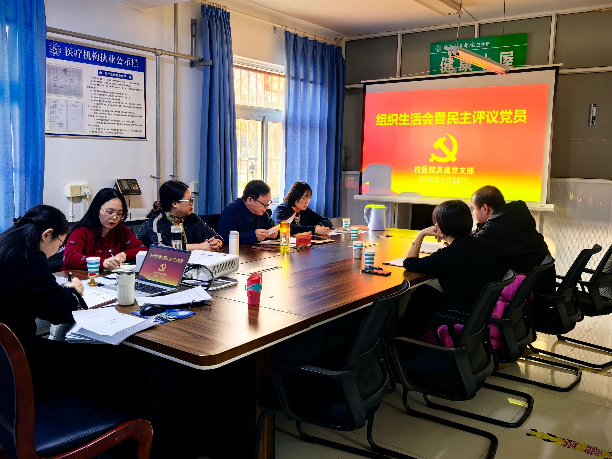 为深入学习贯彻党的二十届四中全会精神,坚持不懈用习近平新时代中国特色社会主义思想凝心铸魂,2026年1月13日,校医院直属党支部召开2025年度组织生活会暨民主评议党员大会。会议由党支部书记王伟主持,支部全体党员参加。