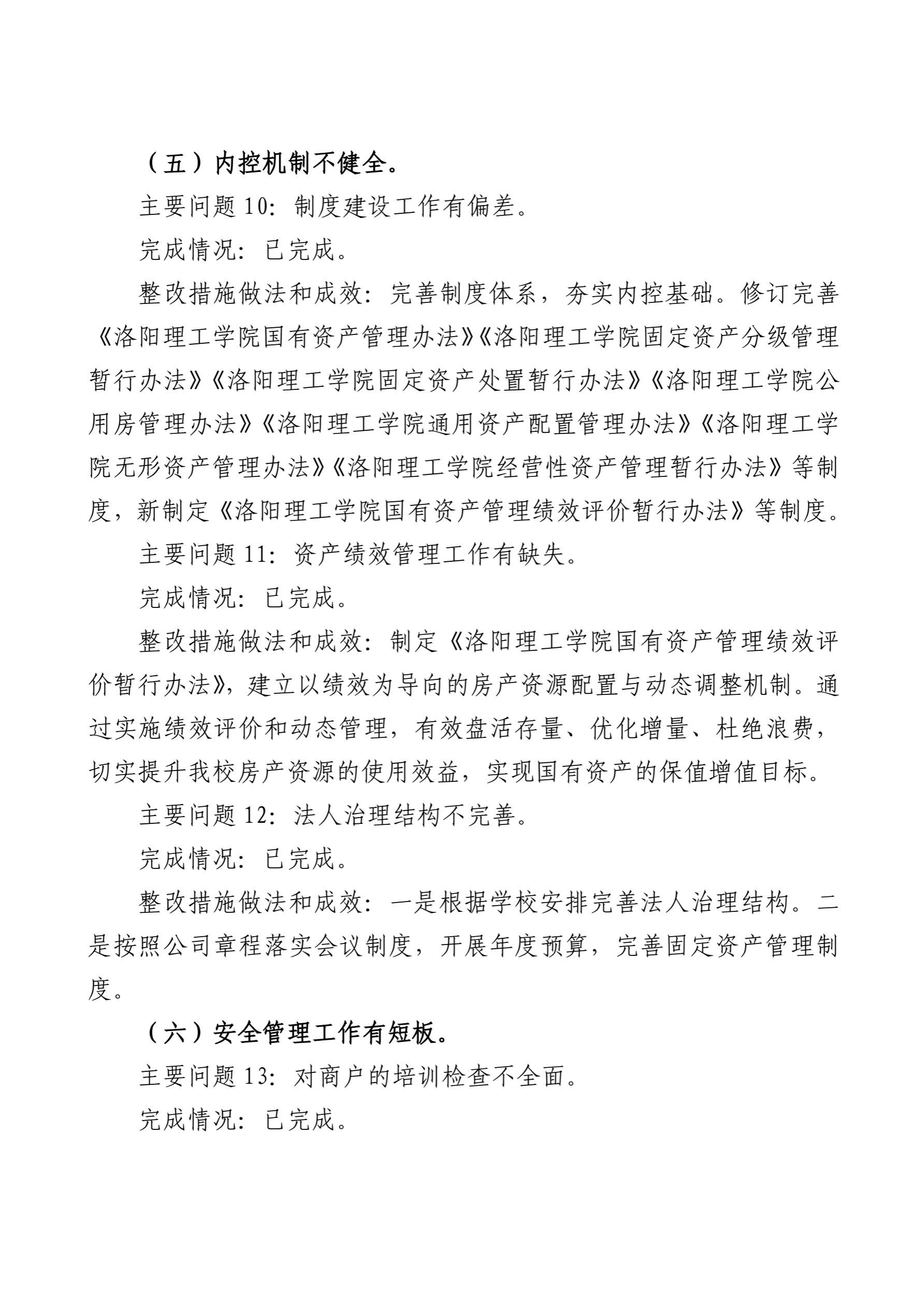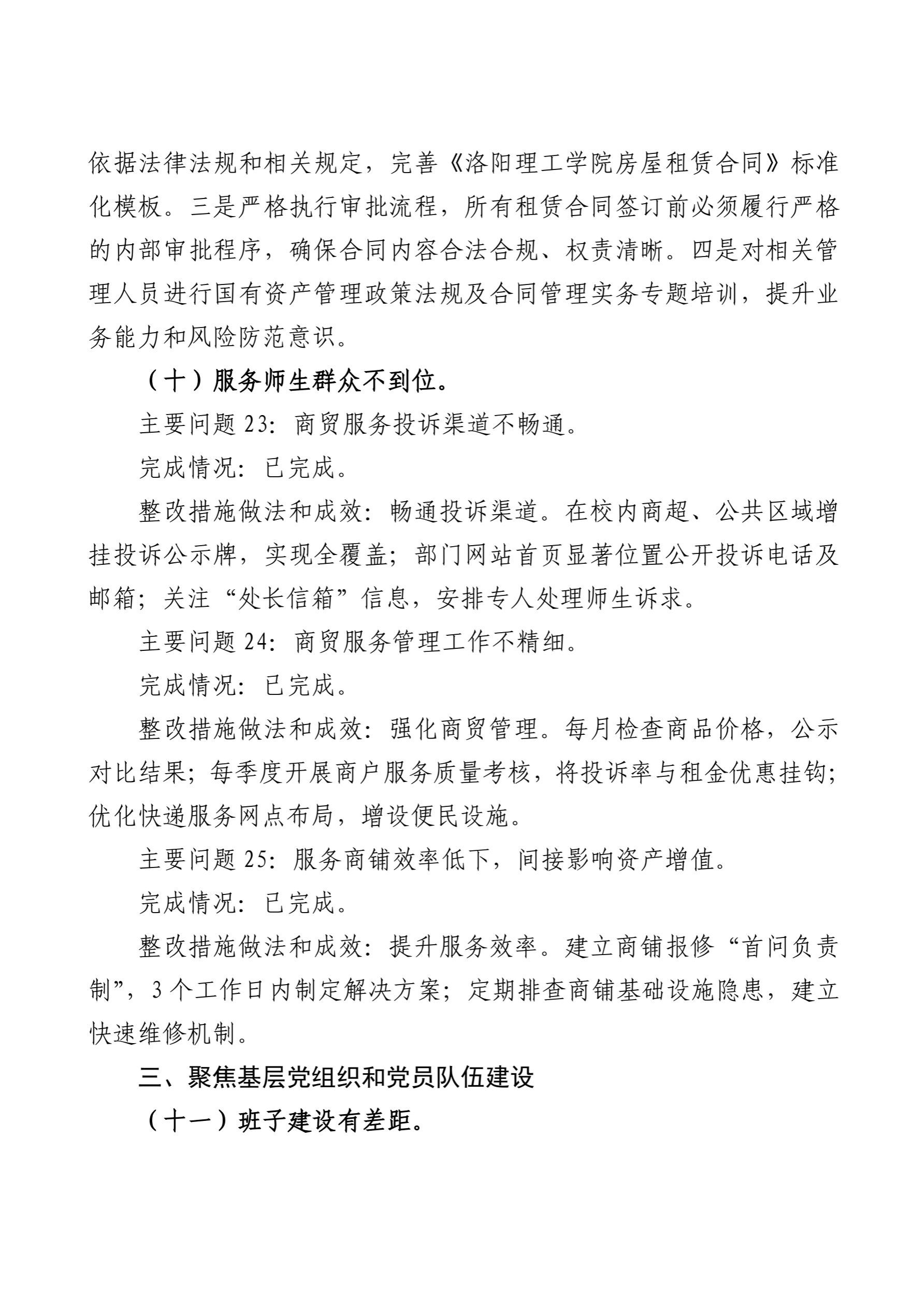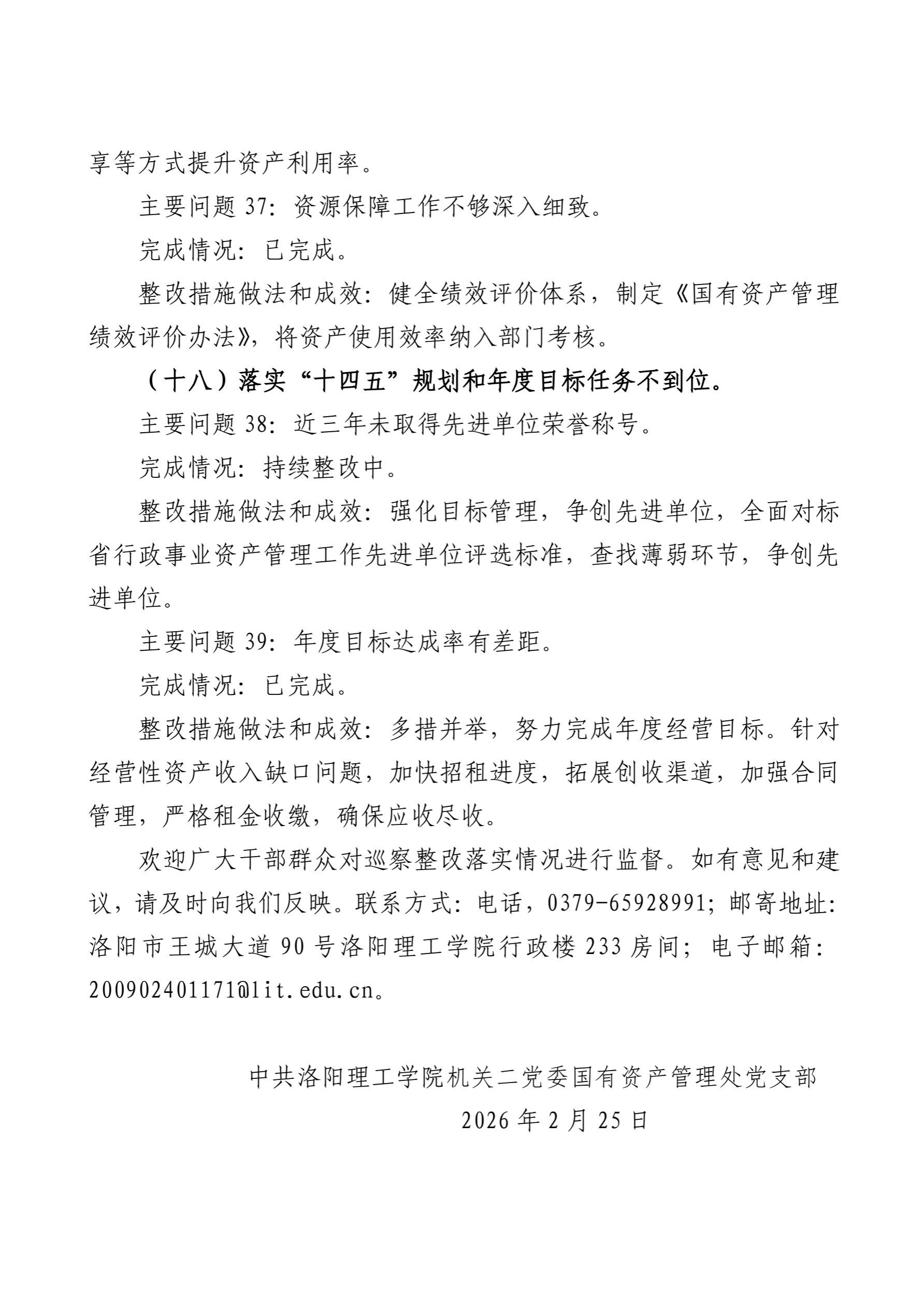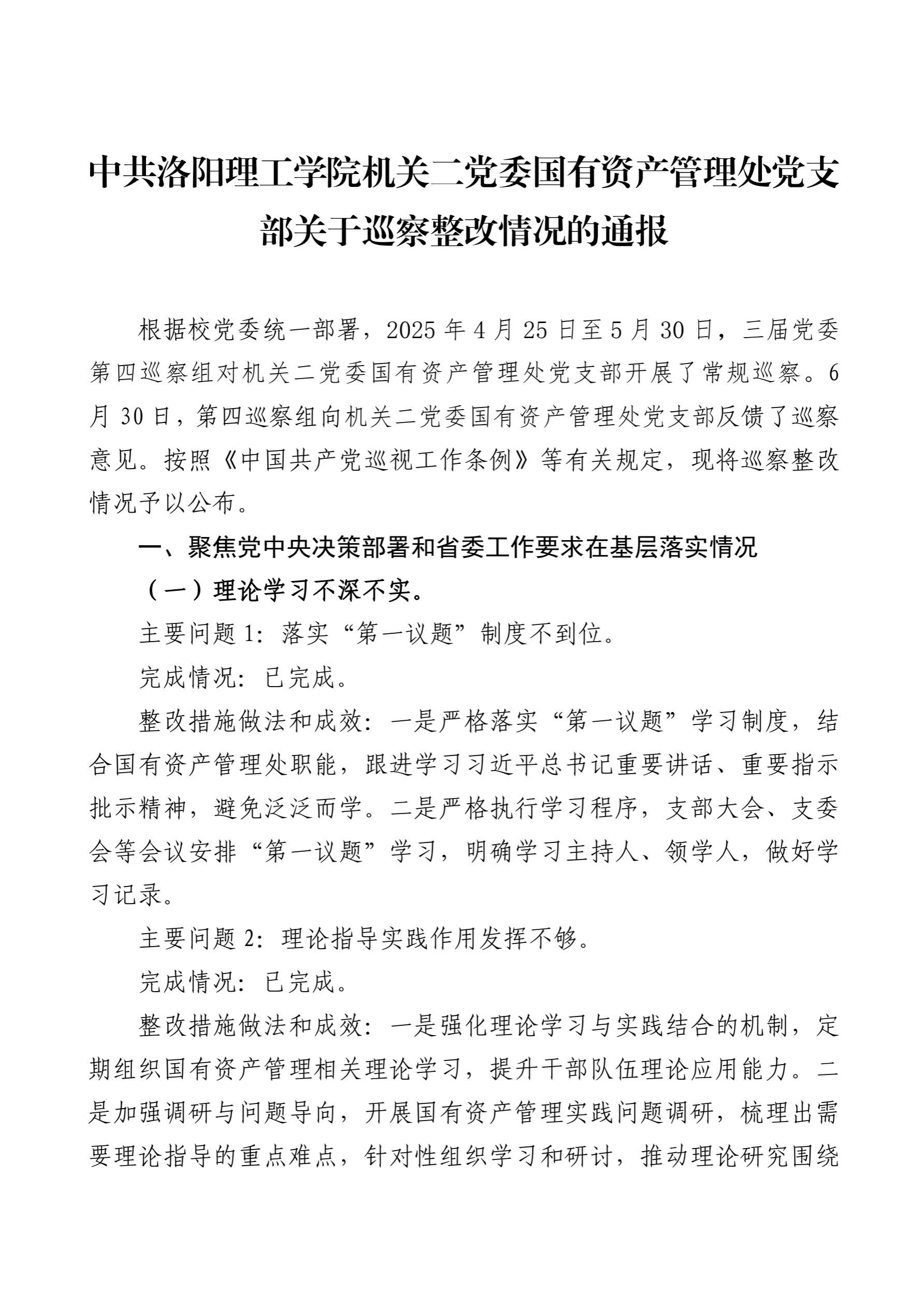 中共洛阳理工学院机关二党委国有资产管理处党支部关于巡察整改情况的通报