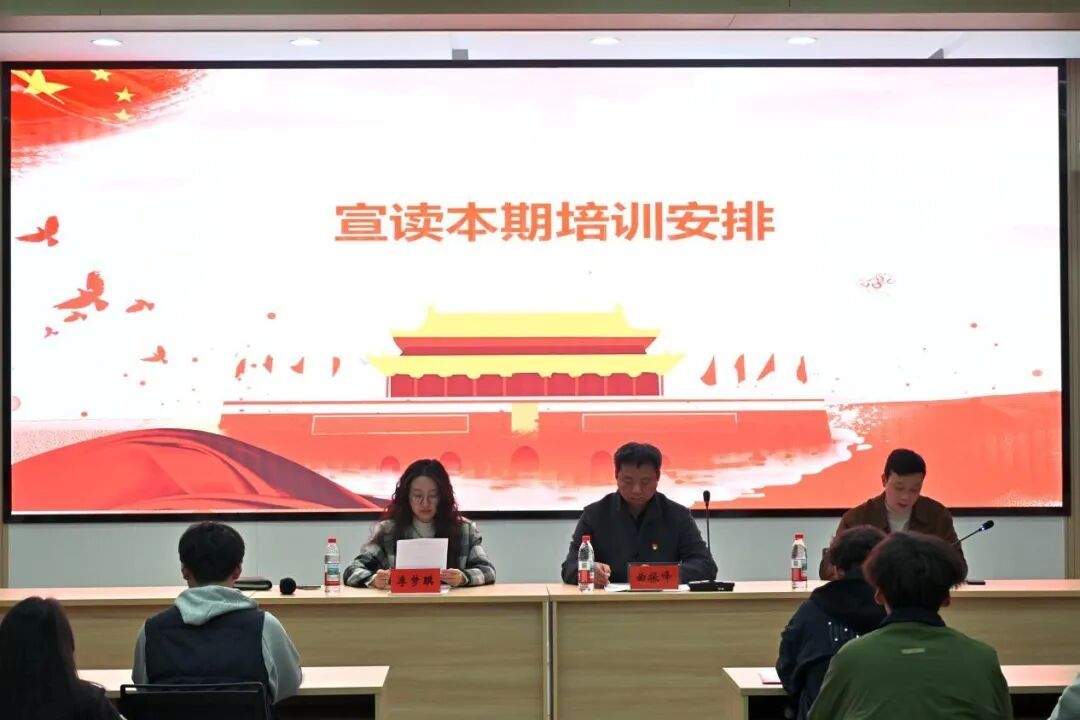 仪式在庄严的国歌声中拉开序幕。李晨飞详细宣读了本期培训安排,系统介绍了课程内容与结业要求,并重点强调学员们要定期开展自我反思,积极参与党课研讨,切实将理论所学转化为实践动力,确保在成长的道路上方向不偏、脚步不停。