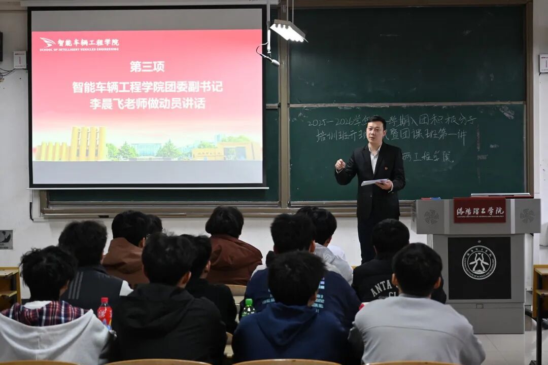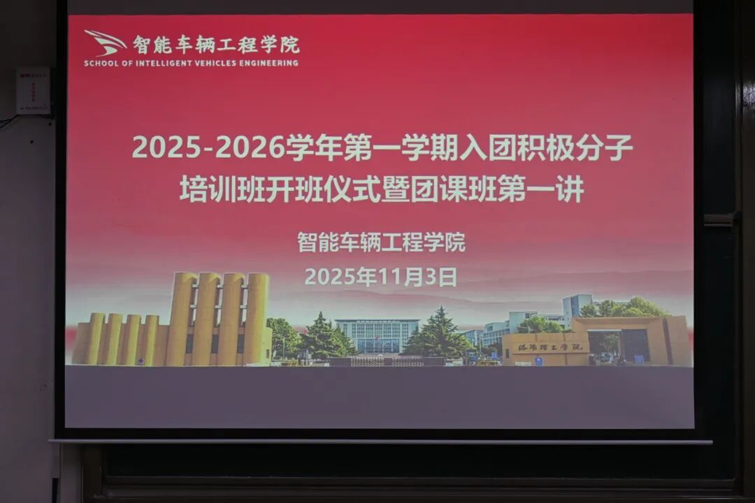为进一步加强共青团员队伍建设,深化青年思想政治引领,2025年11月3日16:30,智能车辆工程学院2025-2026学年第一学期入团积极分子培训班开班仪式暨团课第一讲在CS401举行。院团委副书记李晨飞老师出席仪式,全体入团积极分子参加仪式。仪式由仵明瑞主持。