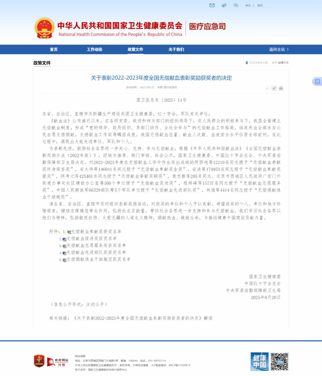 为表彰先进,鼓励社会各界进一步关心、支持、参与无偿献血,825日,国家卫生健康委、中国红十字会总会、中央军委后勤保障部卫生局下发《关于表彰2022-2023年度全国无偿献血表彰奖励获奖者的决定》,我院教师宗雪婷荣获“全国无偿献血促进奖”。