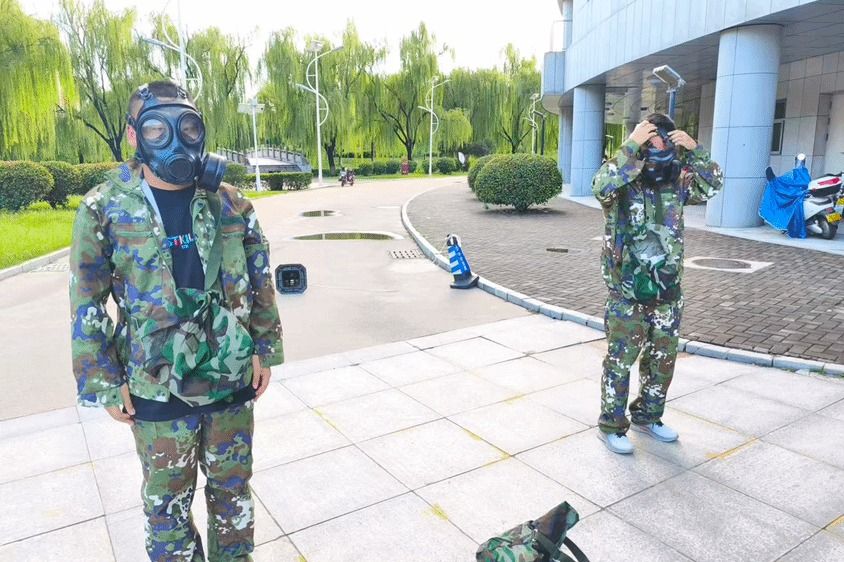 教官强调动作要领为“低头、闭眼、憋气”,双手同时抓住滤毒罐两侧,由下至上迅速将面具罩住面部,调整头带松紧度以确保气密性,操作需牢记“10秒完成是底线,贴合面部无缝隙”,佩戴完成后立即睁眼恢复呼吸,确认视野清晰。