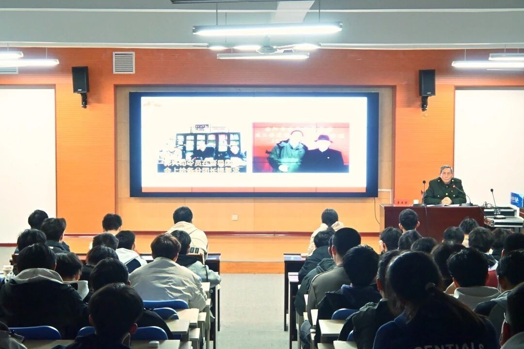 为厚植青年学子爱国情怀,传承红色基因,11月12日晚,我院在FS602举办“传承红色基因 讲好英雄故事”爱国主义报告会。本次报告会由我院学生工作办公室主任宗雪婷主持,特邀洛阳市关工委爱国主义教育团成员、洛阳理工学院关工委爱国主义报告团团长李亚非老师和洛阳理工学院关工委爱国主义报告团成员李金水老师担任主讲,我院2025级新生、入党发展对象、入党积极分子及学生骨干代表参加讲座。