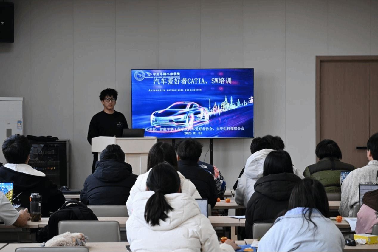 培训采用“理论讲解、实例演示与互动答疑相结合”的模式,聚焦于CATIA软件的核心功能进行系统性教学。汽车爱好者协会会长张聪达首先系统地介绍了软件界面布局与基础操作逻辑,帮助同学们快速适应建模环境。随后,通过汽车零部件实际案例,详细讲解了草图绘制、特征建模、装配设计等关键环节,并深入探讨了参数化设计思维在工程实践中的具体应用。培训期间,同学们积极参与、专注听讲,并在答疑环节中踊跃提问。学长针对软件操作中的常见问题及建模思路构建等内容进行了详尽解答,现场学习气氛热烈。本次活动是我院实施“以赛促学、以训促用”教学理念的具体体现,不仅显著提升了学生的专业软件操作技能,还近一步增强了其创新设计与工程实践能力,为后续参与课程设计、学科竞赛乃至未来职业发展奠定了扎实的技术基础。