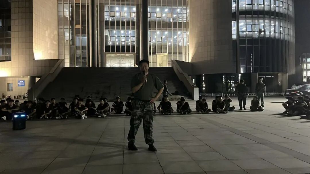 表演尾声,曲振峰老师进行总结。他首先肯定了新生们在军训中的坚韧表现,随后对全体新生寄予殷切期望,并鼓励大家以更饱满的热情投入后续训练,期待大家最终呈现出优异的军训成果。