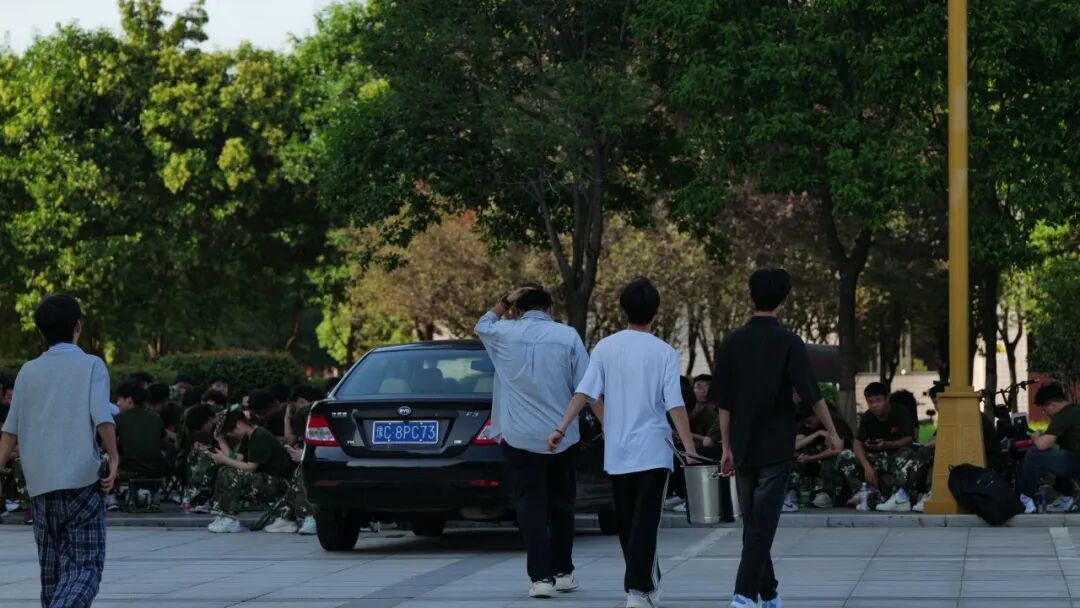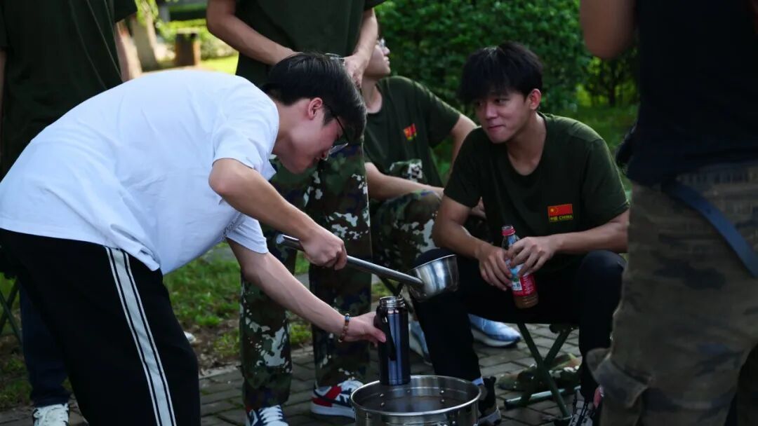 训练间隙,新生们一排排挨着坐下,脸和脖颈挂着汗珠,嗓音虽因喊口号有些沙哑,眼底却仍闪着鲜活的光。有人闭目养神,有人凑在一起小声交流,这时学长送来学校准备的绿豆汤,清甜凉意顺着喉咙滑下,瞬间驱散了燥热,连疲惫都淡了几分。