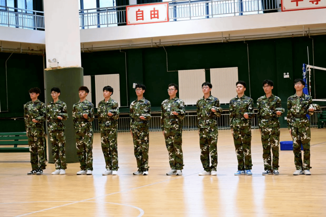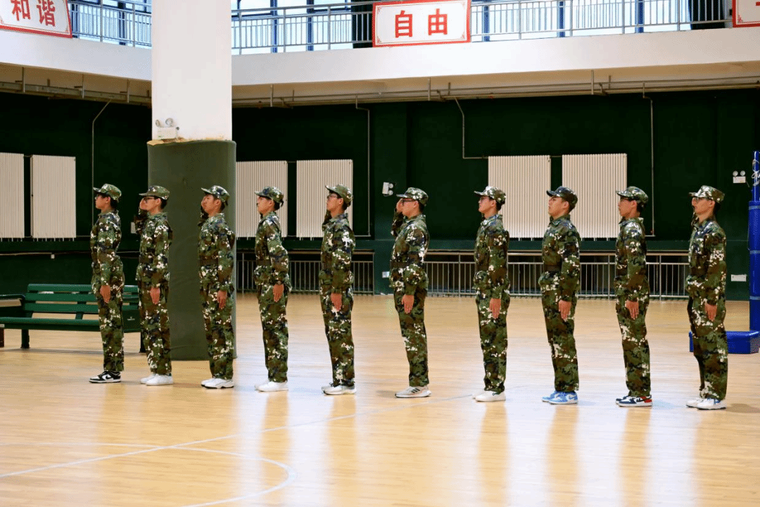 随后登场的十人队列展示同样亮眼。各队列方阵迈着稳健步伐依次行进,转体、踏步、立定等动作协调一致,全程无多余声响,精准的节奏与整齐的姿态背后,是新生们反复磨合的默契,更是军训期间“令行禁止、团结协作”纪律意识的生动体现。从最初的步伐错乱、动作生疏,到如今的整齐划一、精神抖擞,学子们用肉眼可见的成长,直观呈现了军训赋予的蜕变。