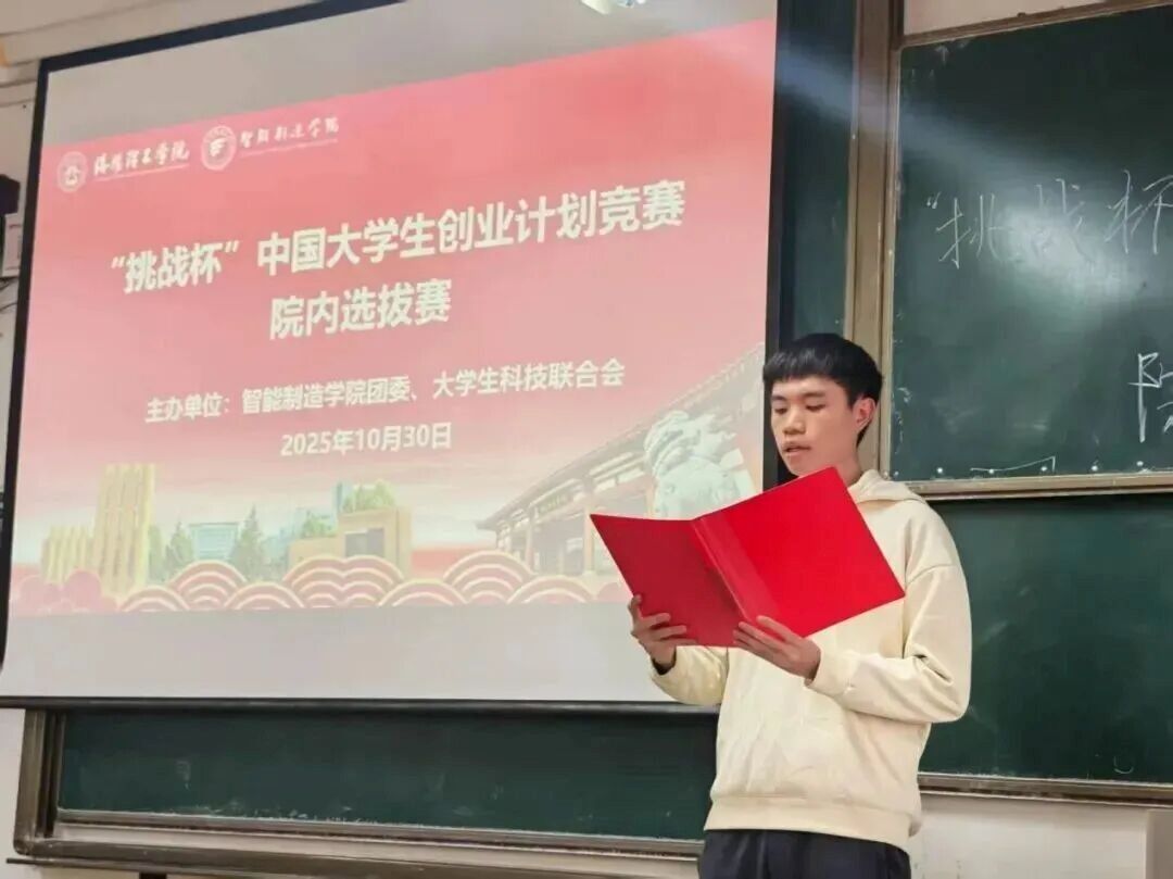 科技创新是经济增长的核心动力,能催生新产业、新业态,提升国家在全球产业链的地位,增强综合国力与国际话语权,保障战略安全。此次选拔赛不仅为学生提供了展示创业才华的平台,更激发了大家的创新思维与创业热情。期待各团队在后续赛事中继续突破,展现智能制造学子的科创风采!赛事简介:“挑战杯”中国大学生创业计划竞赛是由共青团中央、中国科协、教育部、全国学联等单位主办的全国性创新创业赛事,每两年举办一届。竞赛分普通高校和职业院校两类参赛对象,设置科技创新和未来产业、乡村振兴和农业农村现代化、社会治理和公共服务、生态环保和可持续发展、文化创意和区域合作五个组别。赛事旨在引导大学生将创新实践与社会需求结合,覆盖全国2700余所高校,累计吸引超300万学生参与。