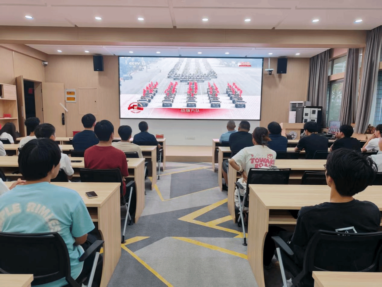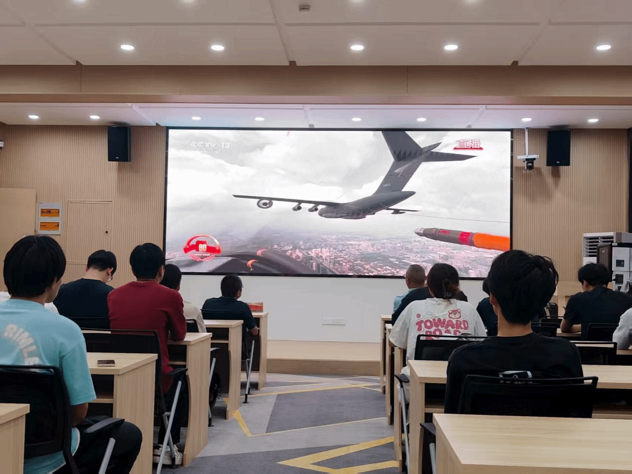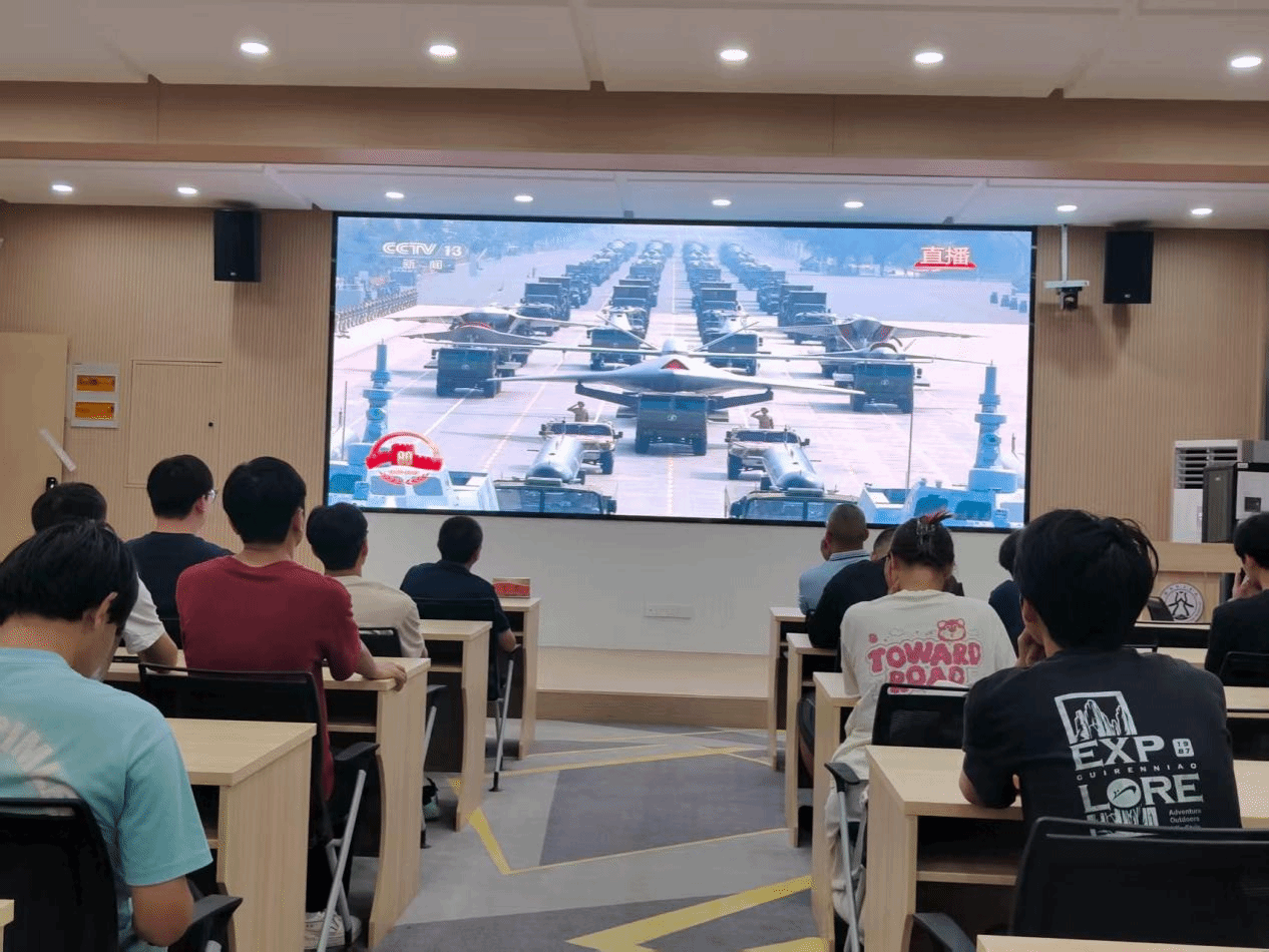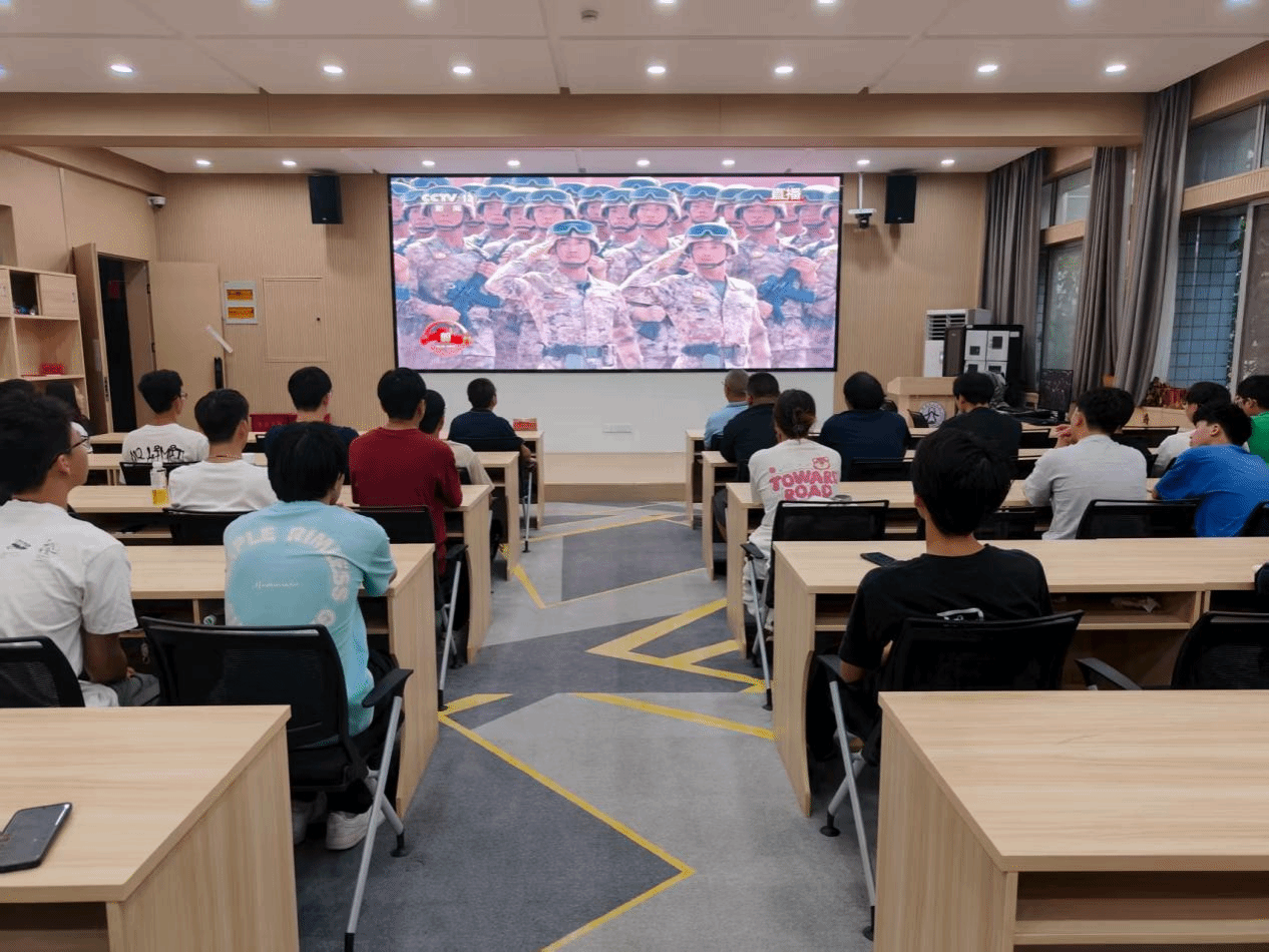 洛阳理工学院智能制造学院在CS203教室设置会场,集中组织师生收看大会直播。智能制造学院党委书记贺艺、院长朱德荣、团委副书记韩坤及学院学生在会场共同观看大会盛况。习近平总书记的重要讲话和盛大阅兵式在学院师生中引起热烈反响。