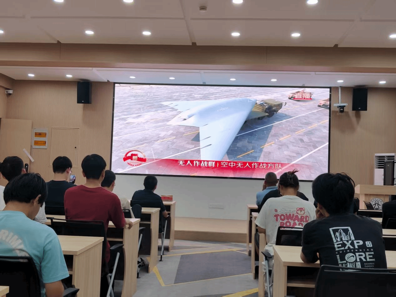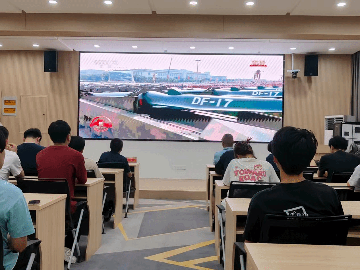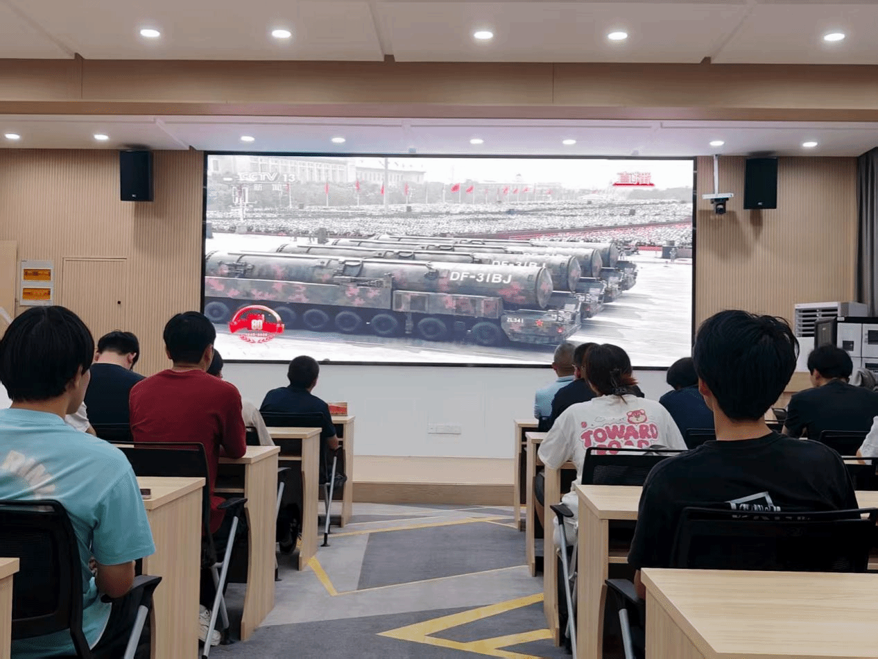 洛阳理工学院智能制造学院在CS203教室设置会场,集中组织师生收看大会直播。智能制造学院党委书记贺艺、院长朱德荣、团委副书记韩坤及学院学生在会场共同观看大会盛况。习近平总书记的重要讲话和盛大阅兵式在学院师生中引起热烈反响。