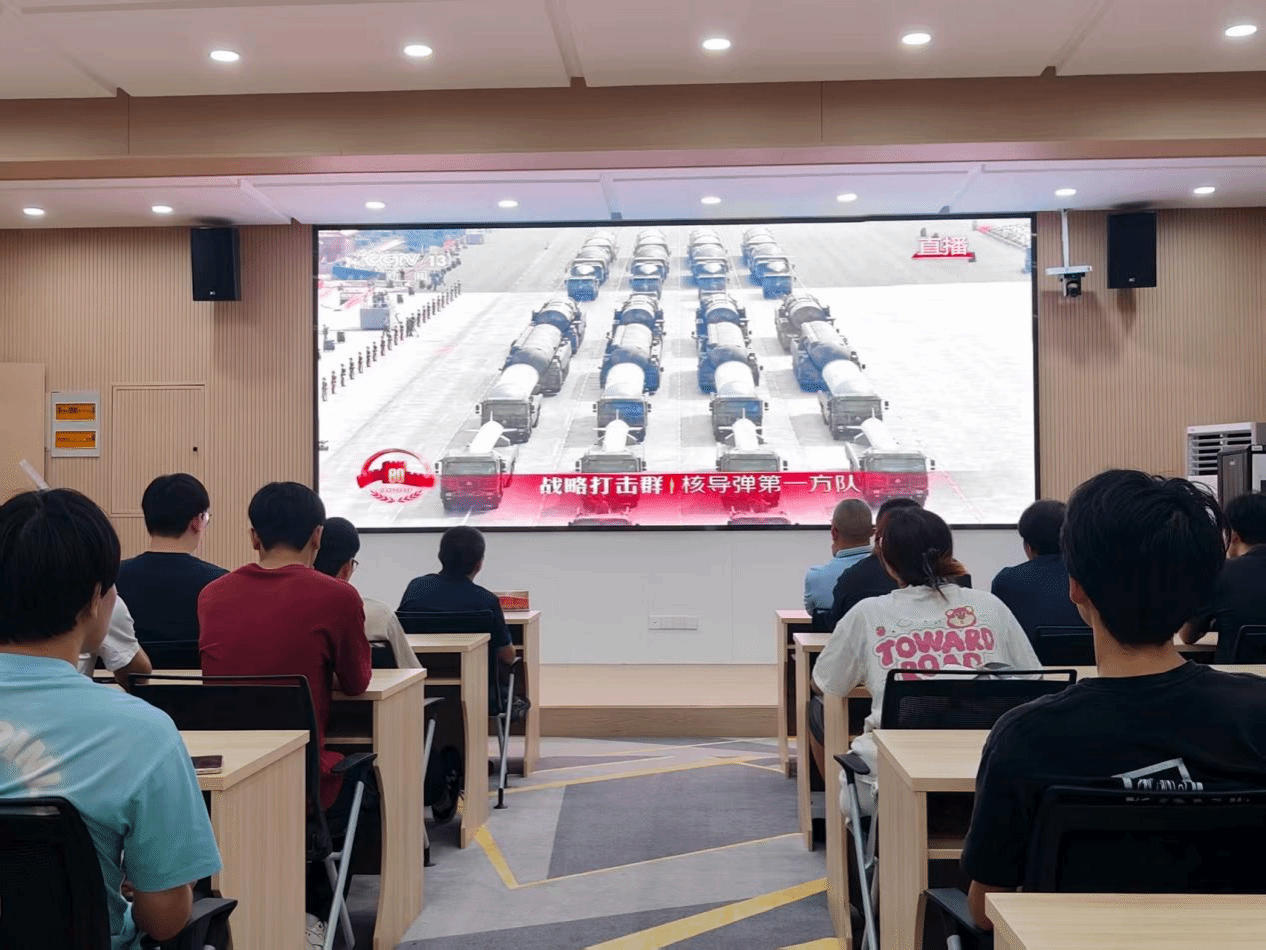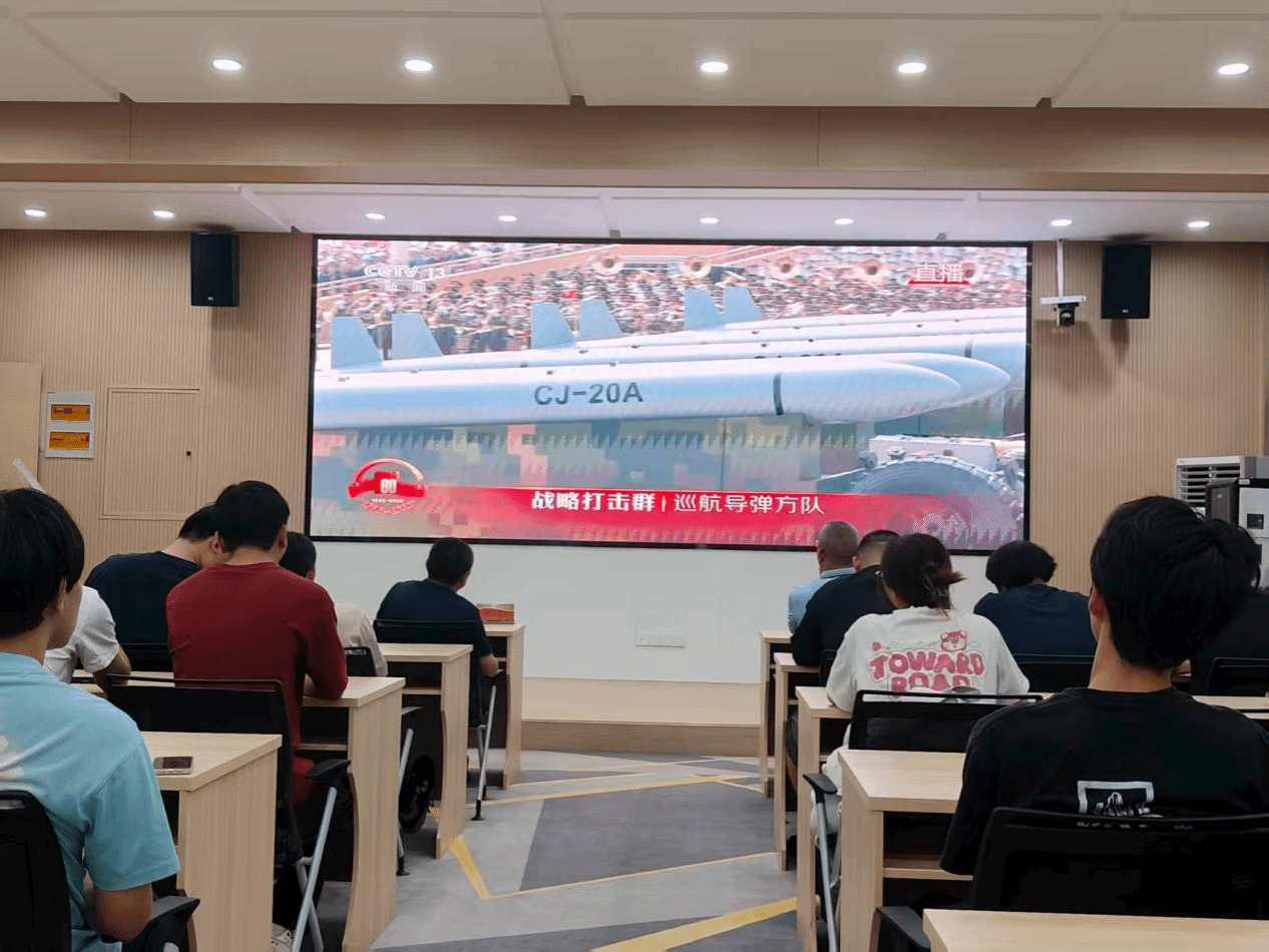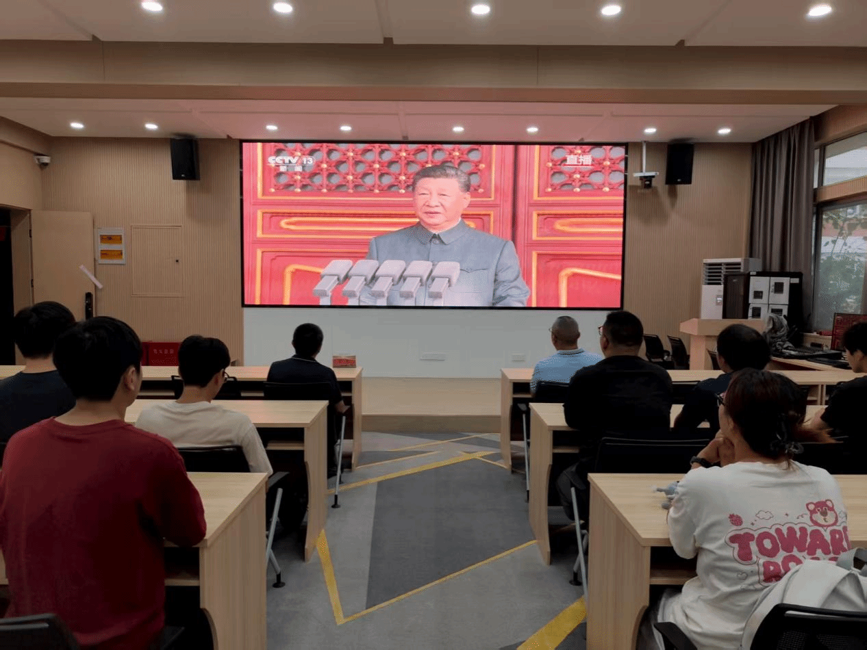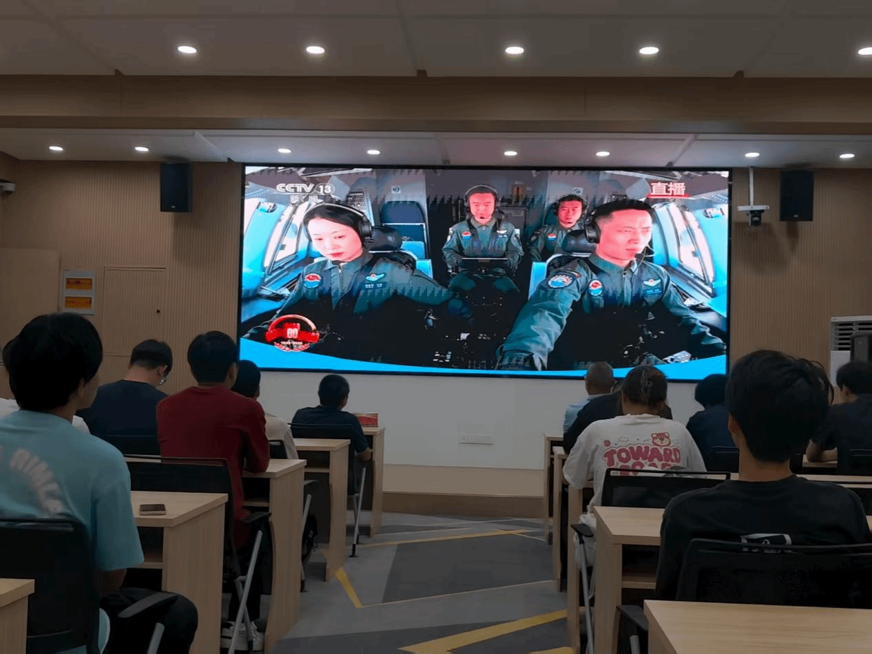 洛阳理工学院智能制造学院在CS203教室设置会场,集中组织师生收看大会直播。智能制造学院党委书记贺艺、院长朱德荣、团委副书记韩坤及学院学生在会场共同观看大会盛况。习近平总书记的重要讲话和盛大阅兵式在学院师生中引起热烈反响。
